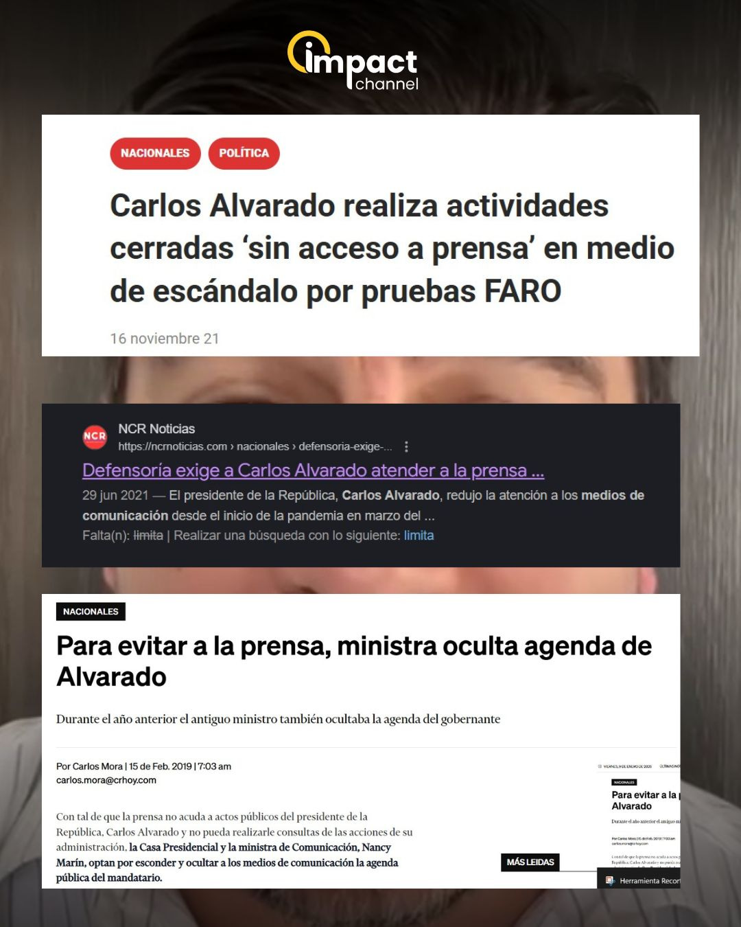 Sin embargo, las declaraciones de Alvarado contrastan con lo ocurrido durante su propia administración, cuando distintos sectores periodísticos denunciaron restricciones al acceso a la información. En 2019 y 2021, medios nacionales documentaron que Casa Presidencial ocultó agendas, realizó actividades sin acceso a prensa y redujo espacios para consultas directas.