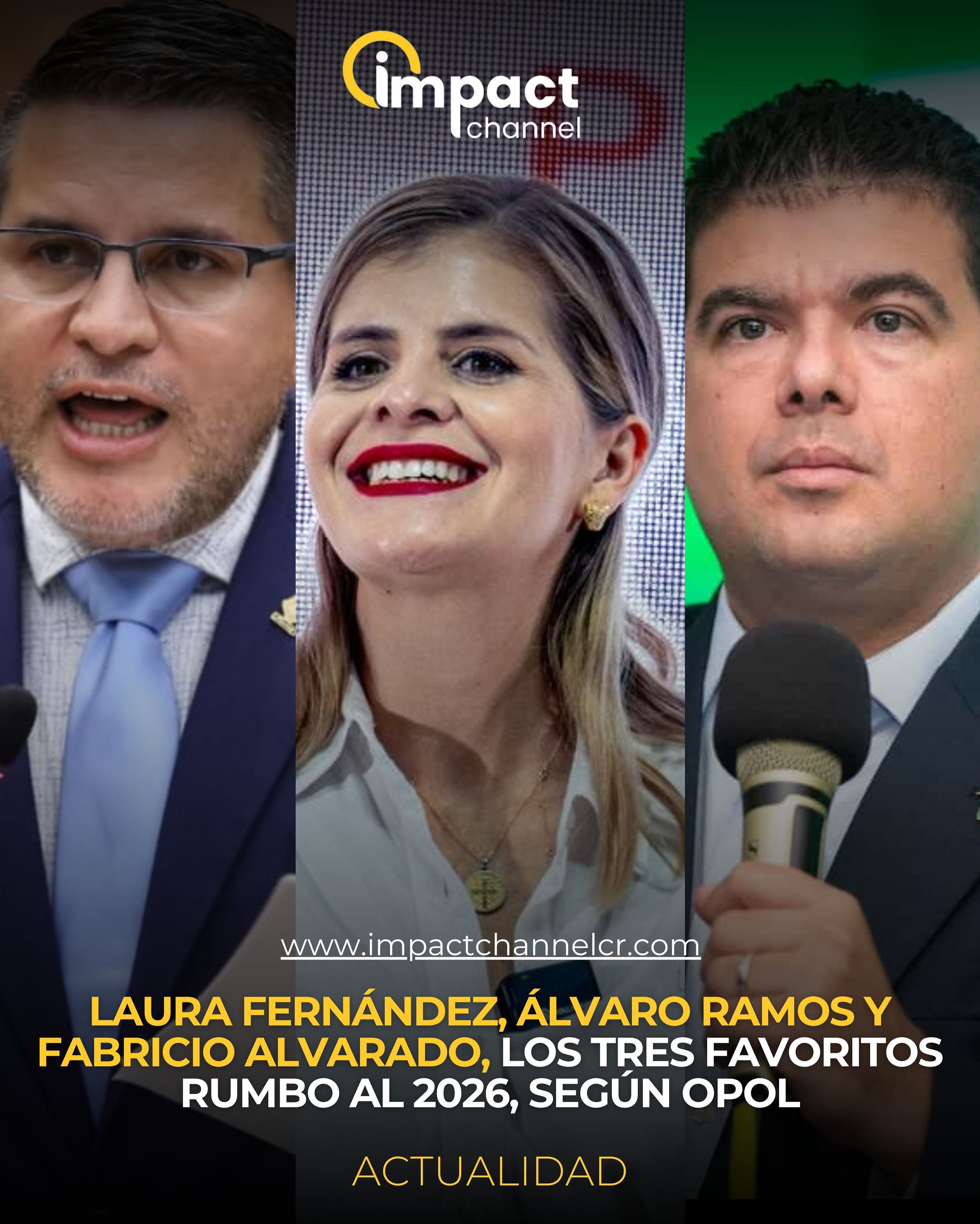 La más reciente encuesta de OPOL Consultores revela que Laura Fernández, Álvaro Ramos y Fabricio Alvarado se posicionan como los tres principales favoritos en la carrera presidencial hacia las elecciones del 2026.