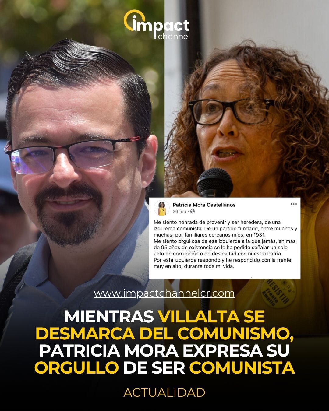 Mientras José María Villalta trata de desmarcarse del comunismo, la presidente del Frente Amplio, Patricia Mora, dice sentirse orgullosa de provenir de una izquierda comunista, destacando sus raíces familiares y su trayectoria dentro de ese movimiento.