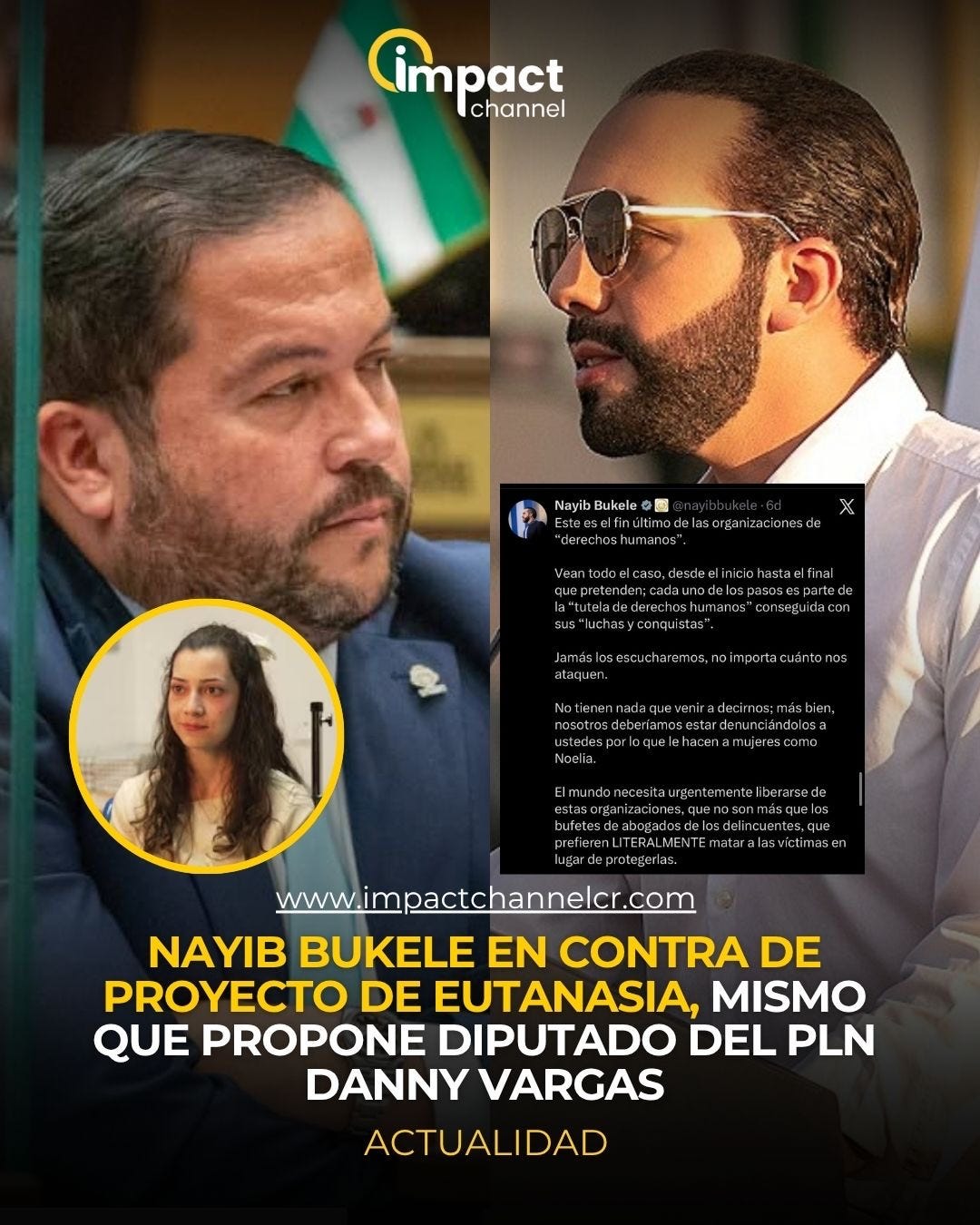 Nayib Bukele en contra de proyecto de eutanasia, mismo que propone diputado del PLN Danny Vargas