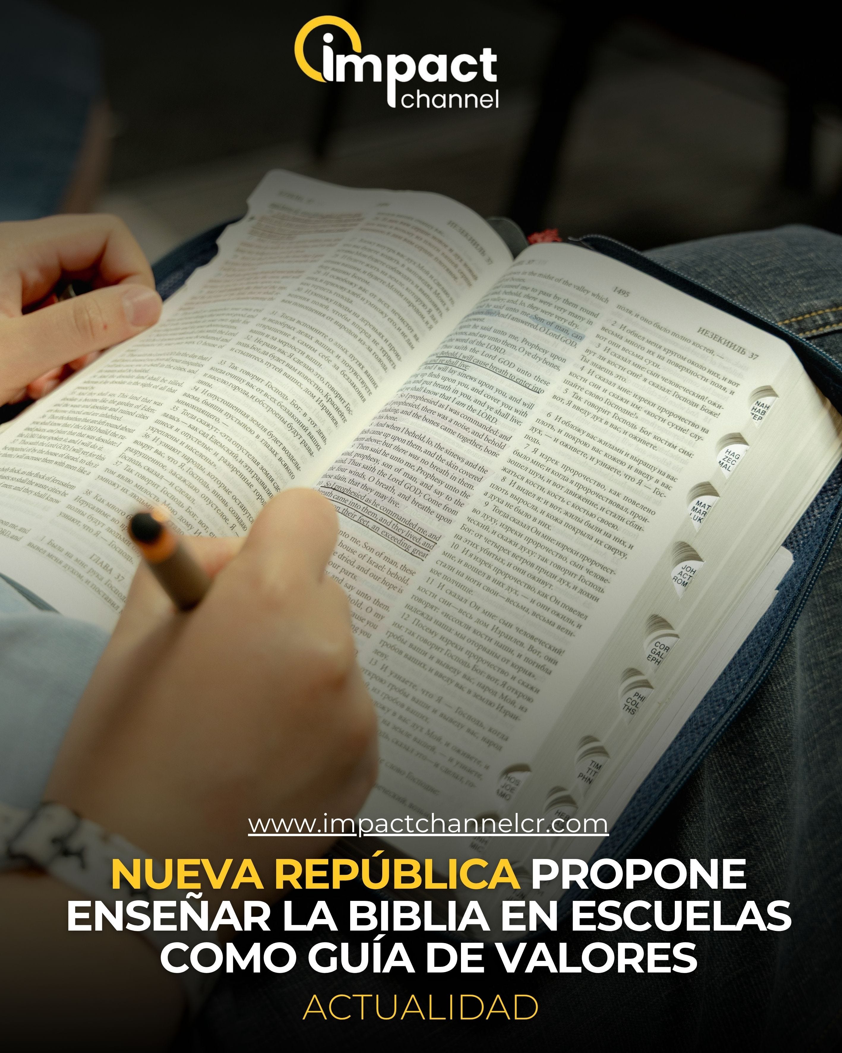 El partido Nueva República anunció un proyecto de ley que busca incluir la Biblia como libro de estudio en los salones de clases de escuelas y colegios, siempre bajo la autorización de los padres. La iniciativa fue presentada por el líder del partido, Fabricio Alvarado.