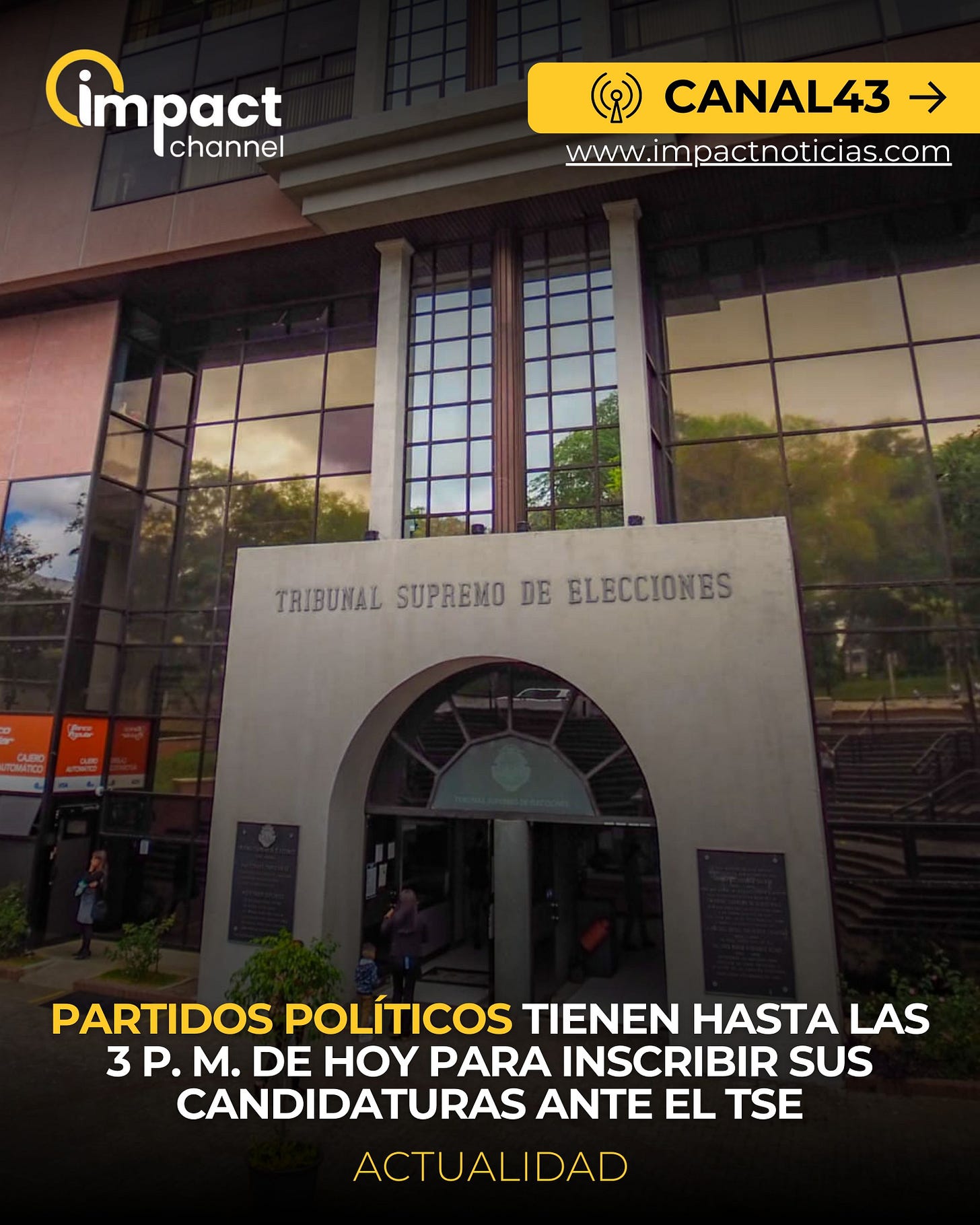 De acuerdo con el artículo 148 del Código Electoral, el plazo vence a esa hora y, según reiteró el TSE, después de las 3 p. m. no se recibirá ninguna gestión, por lo que las agrupaciones que no completen el trámite quedarán fuera de la contienda electoral.