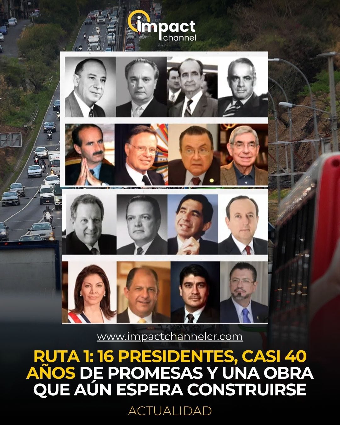 Desde hace casi cuatro décadas, la ampliación de la Ruta 1 entre San José y San Ramón se ha convertido en uno de los proyectos viales más postergados de Costa Rica, a lo largo del tiempo, 16 presidentes han pasado por el poder mientras la obra sigue sin concretarse, pese a las promesas de distintos gobiernos y a la presión de miles de conductores que utilizan diariamente esta carretera.