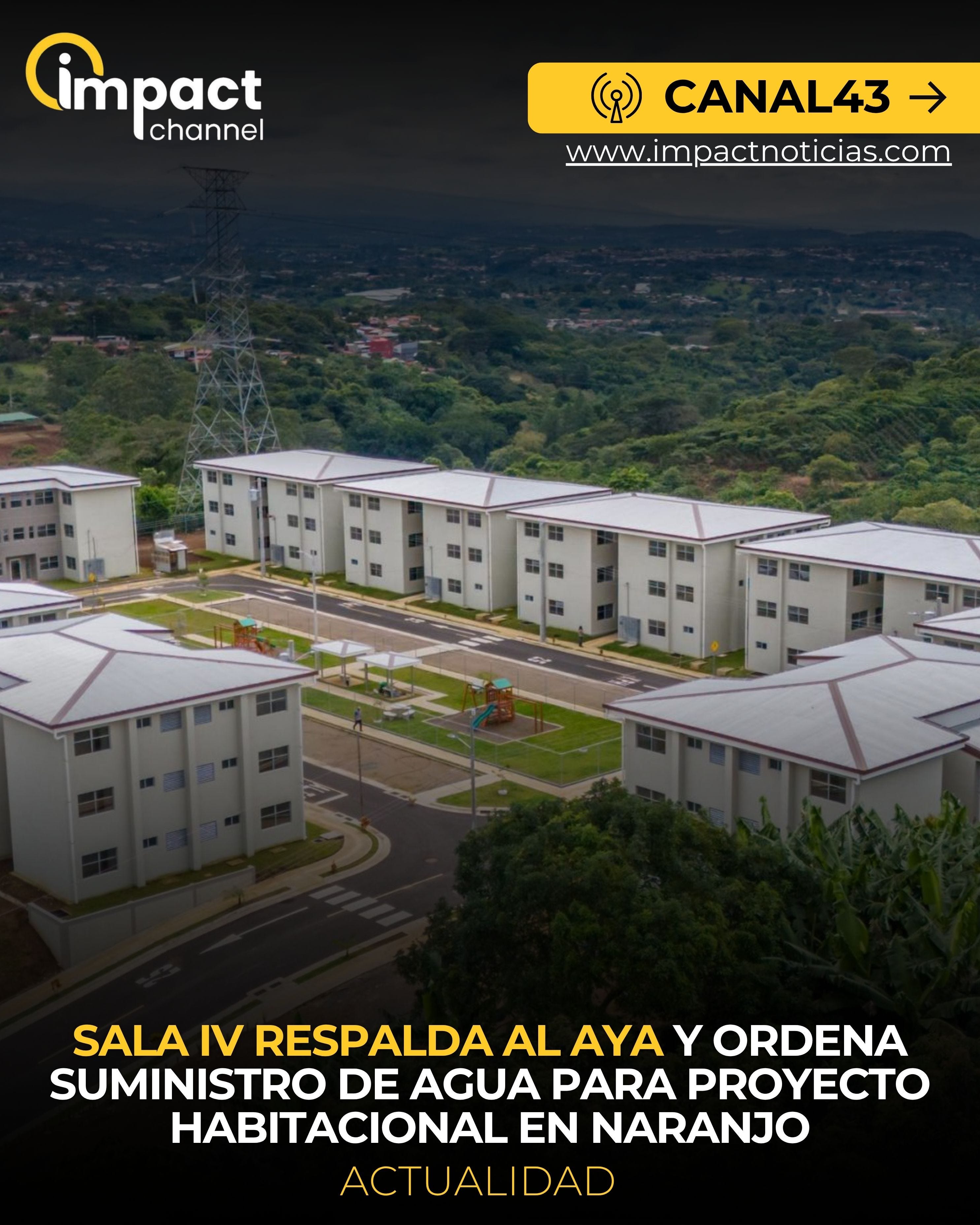 Sala IV respalda al AyA y ordena suministro de agua para proyecto habitacional en Naranjo