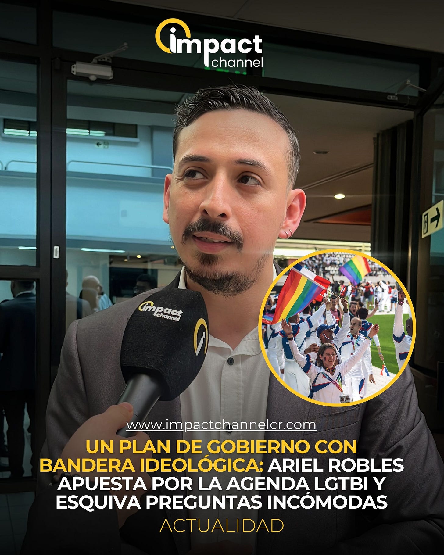 El candidato del Frente Amplio, Ariel Robles, defiende un plan de gobierno que concede un peso notable a la agenda LGTBI con propuestas explícitas como los denominados “Juegos Diversos” y la postulación de Costa Rica como sede de los Gay Games 2030, mientras esquiva, relativiza y confunde cuando se le pregunta por prioridades reales del país.